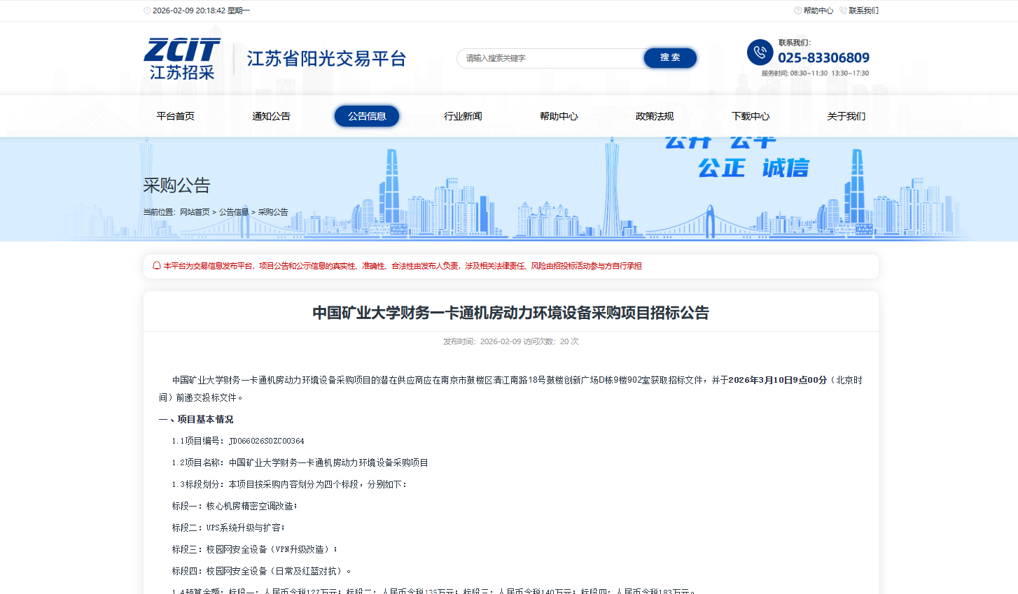 校银合作项目之财务一卡通机房动力环境设备采购项目招标公告如下: